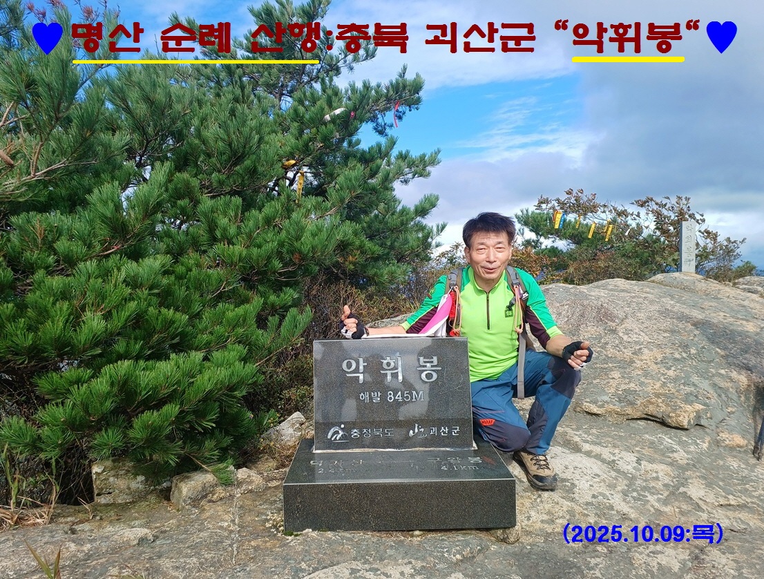 ♣ "마분봉(776m)" 은 충북 괴산군 연풍면과 칠성면 쌍곡리의 경계에 위치한 산으로 바깥에서 보면 바위가 전혀 안 보이는 수더분한 산세에 일단 실망한다. 그러다 능선에 올라서면 공룡 등뼈 같은 옹골찬 산세에 혀를 내두르고, 기암괴석에 뿌리내린 노송과 시원스럽게 펼쳐지는 조망에 눈이 휘둥그레진다. '마분봉' 은 정상 주위로 둥글둥글한 바위가 많은 데다 둥글한 정상이 말똥을 닮은 데서 유래한다. ♣ "악휘봉(845m)" 은 충북 괴산군 연풍면과 칠성면 쌍곡리의 경계에 위치한 산으로 백두대간의 본줄기에서 한 발짝 벗어나 있는 절경의 산이다. 제1봉부터 제5봉까지 5개의 봉우리가 나란히 서 있으며, 제4봉이 주봉(主峰)이다. 악휘봉 정상 부근은 온통 기암괴석과 노송, 고사목으로 이루어져 한 폭의 동양화를 연..