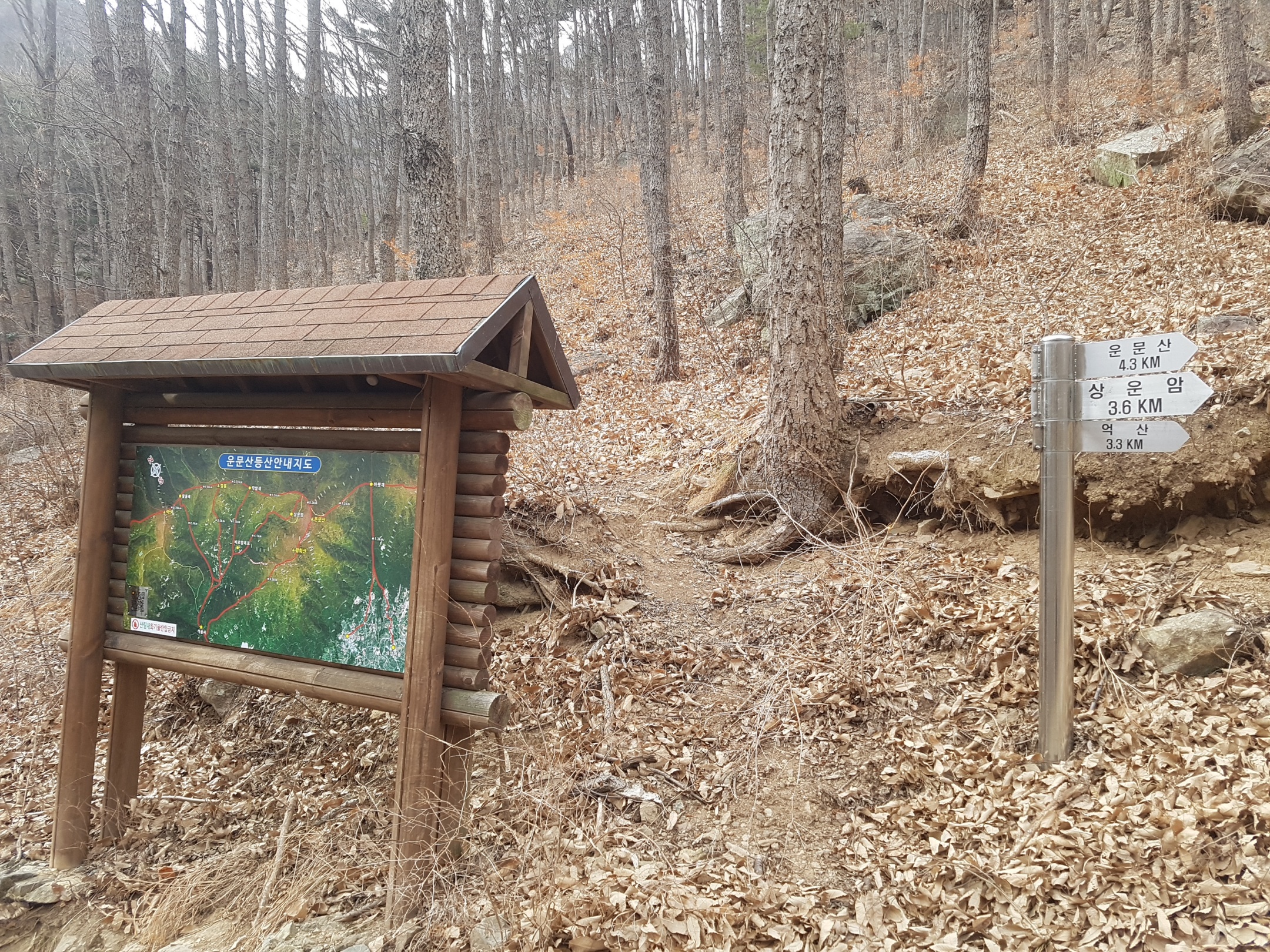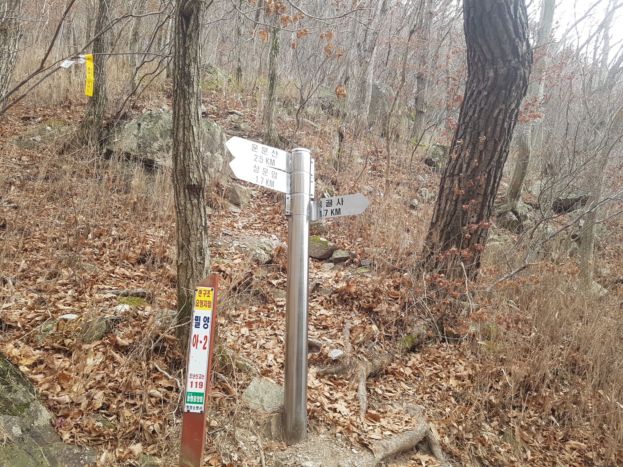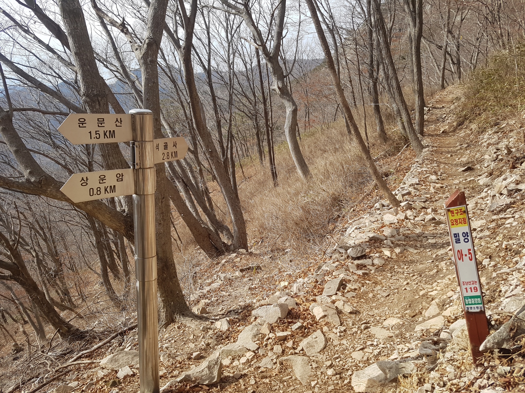 - 함화산 - 운문산 - 독수리 바위 (왕복) - 상운암 갈림길/이정표 - 상운암