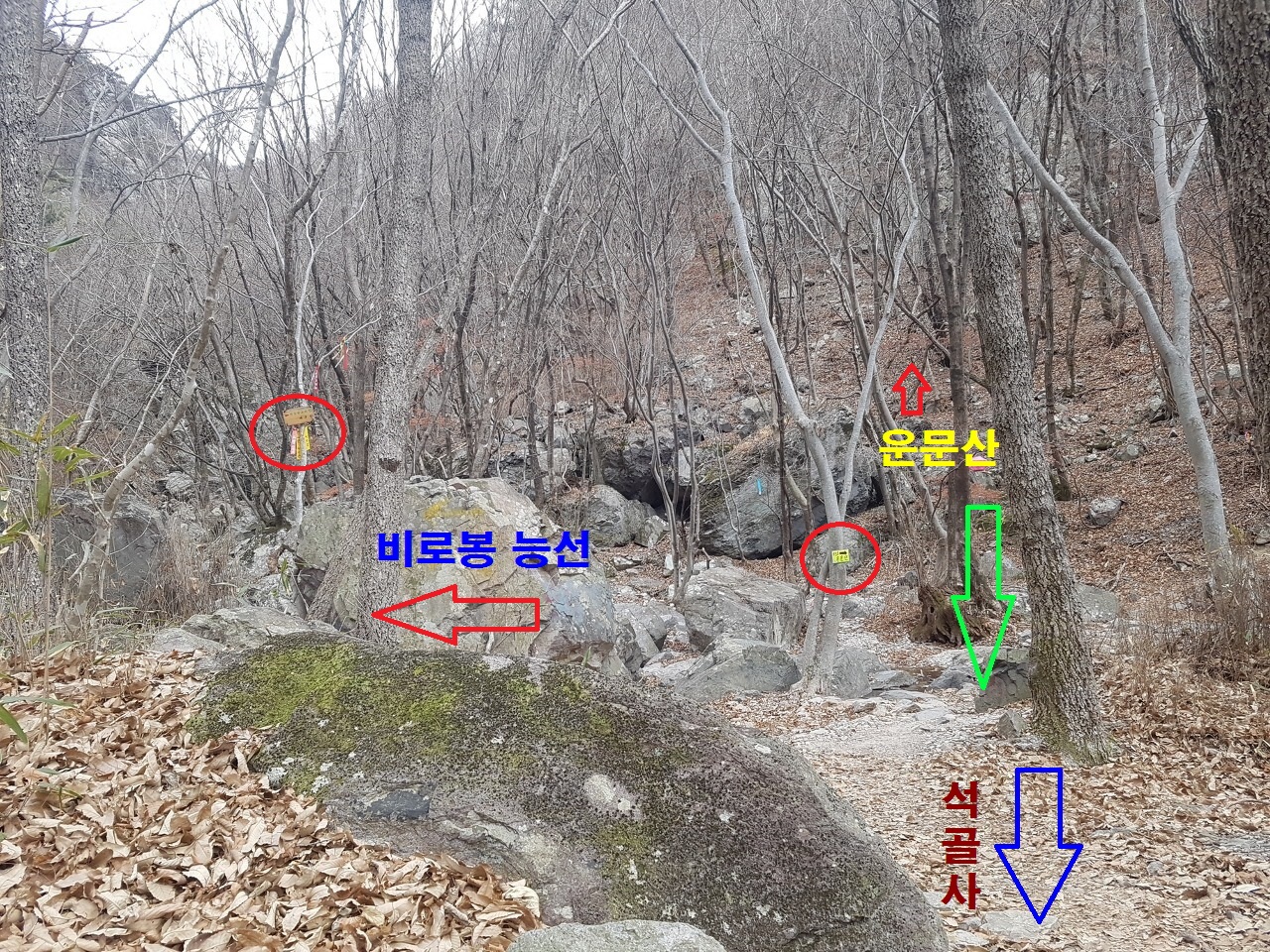 ▲▼ "석골사" 가기前 右측 계곡으로 진입 계곡을 건너 능선으로 오름 ......