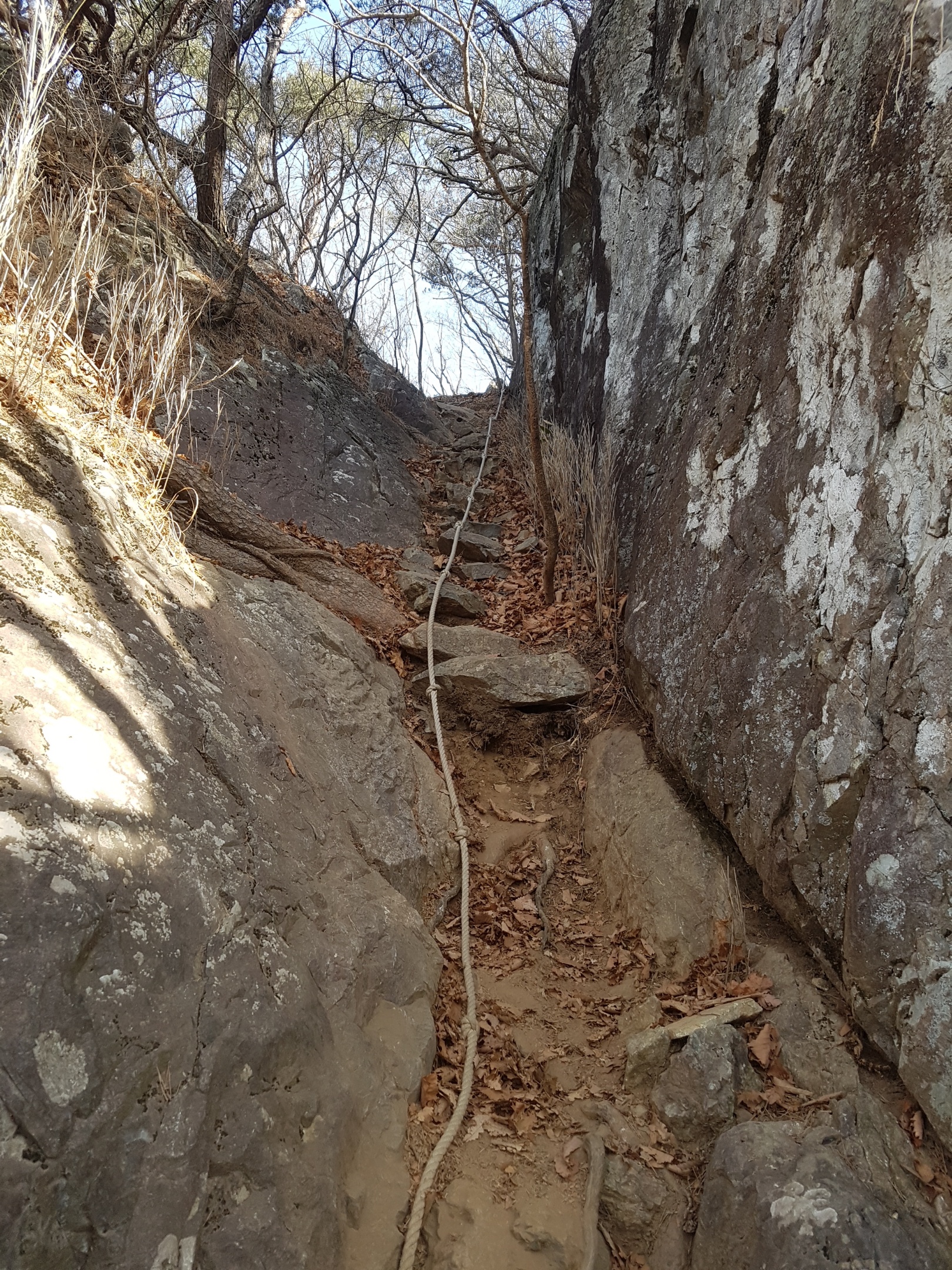 ▲▼ 암릉 밧줄 구간을 지나고 ......