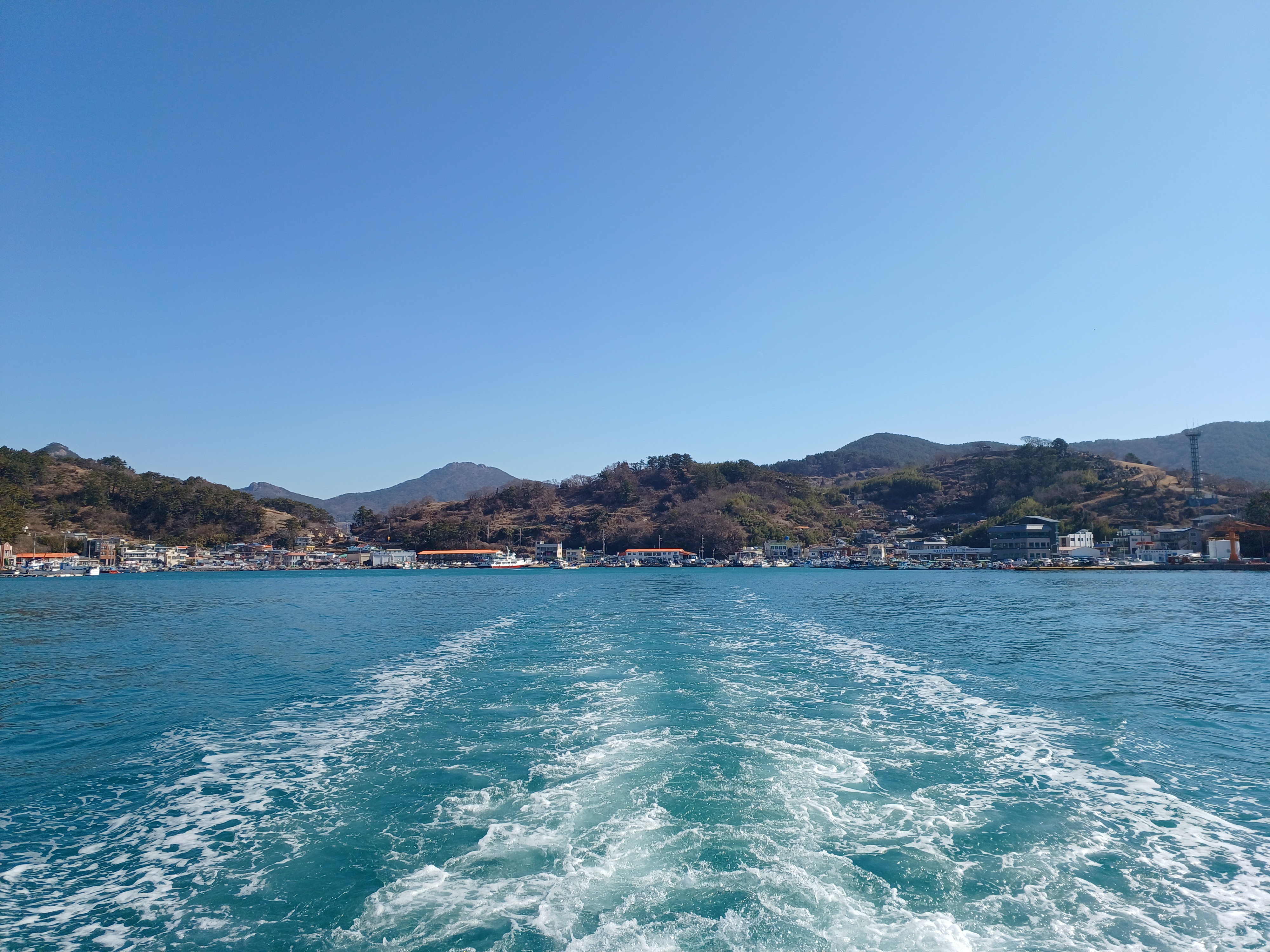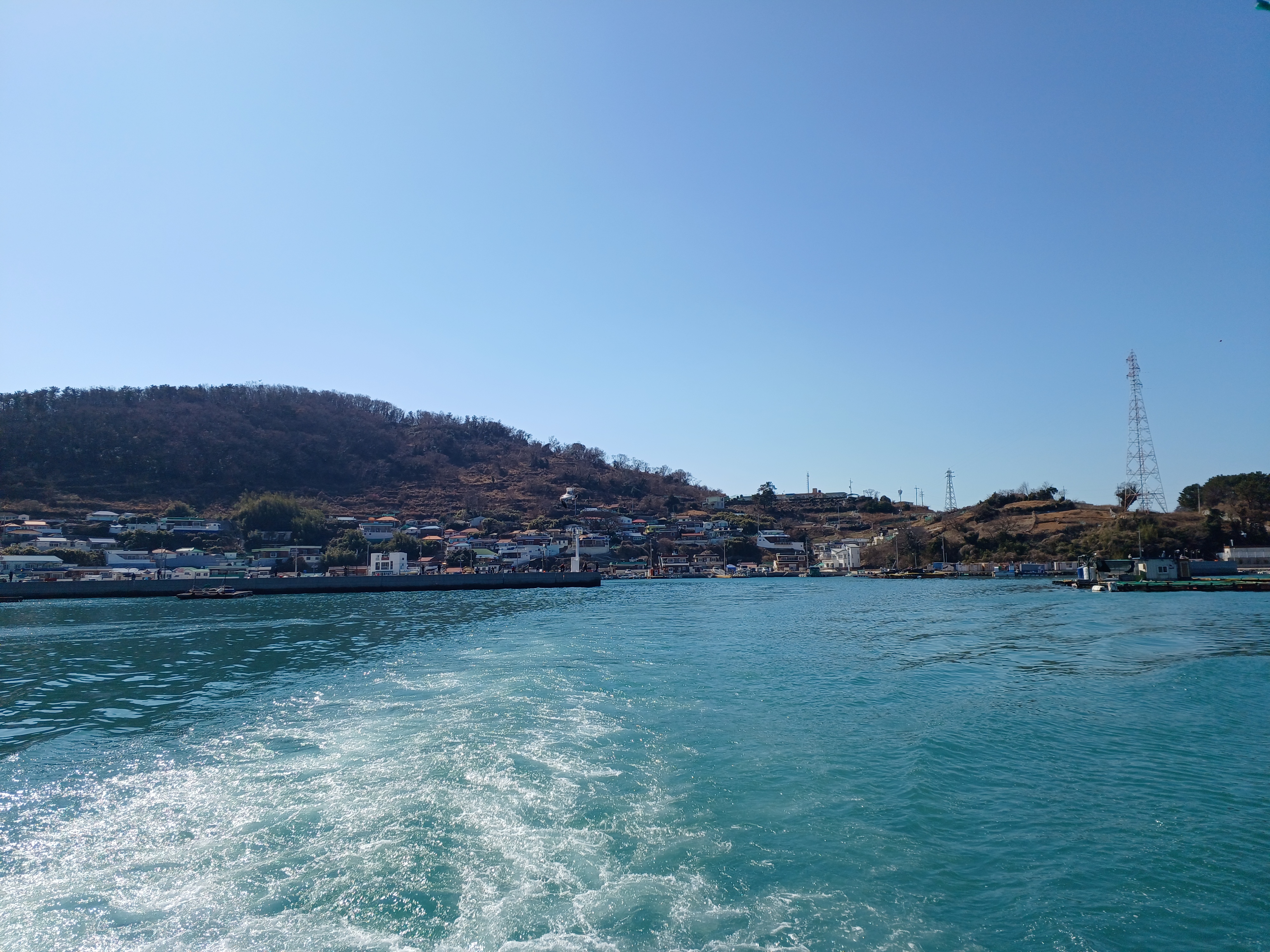▲ 선상에서 되돌아 본 "곤리도/곤리 마을" ......