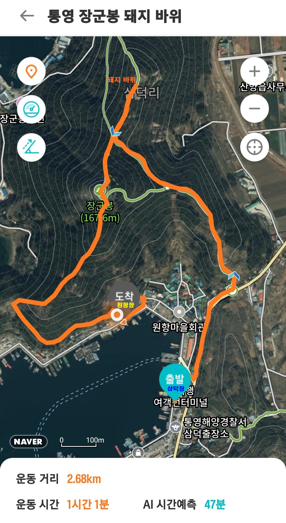 ② 삼덕항 - 원항 마을 - 안내도 - 돼지 바위 - BACK - 장군봉 - 원항 선착장