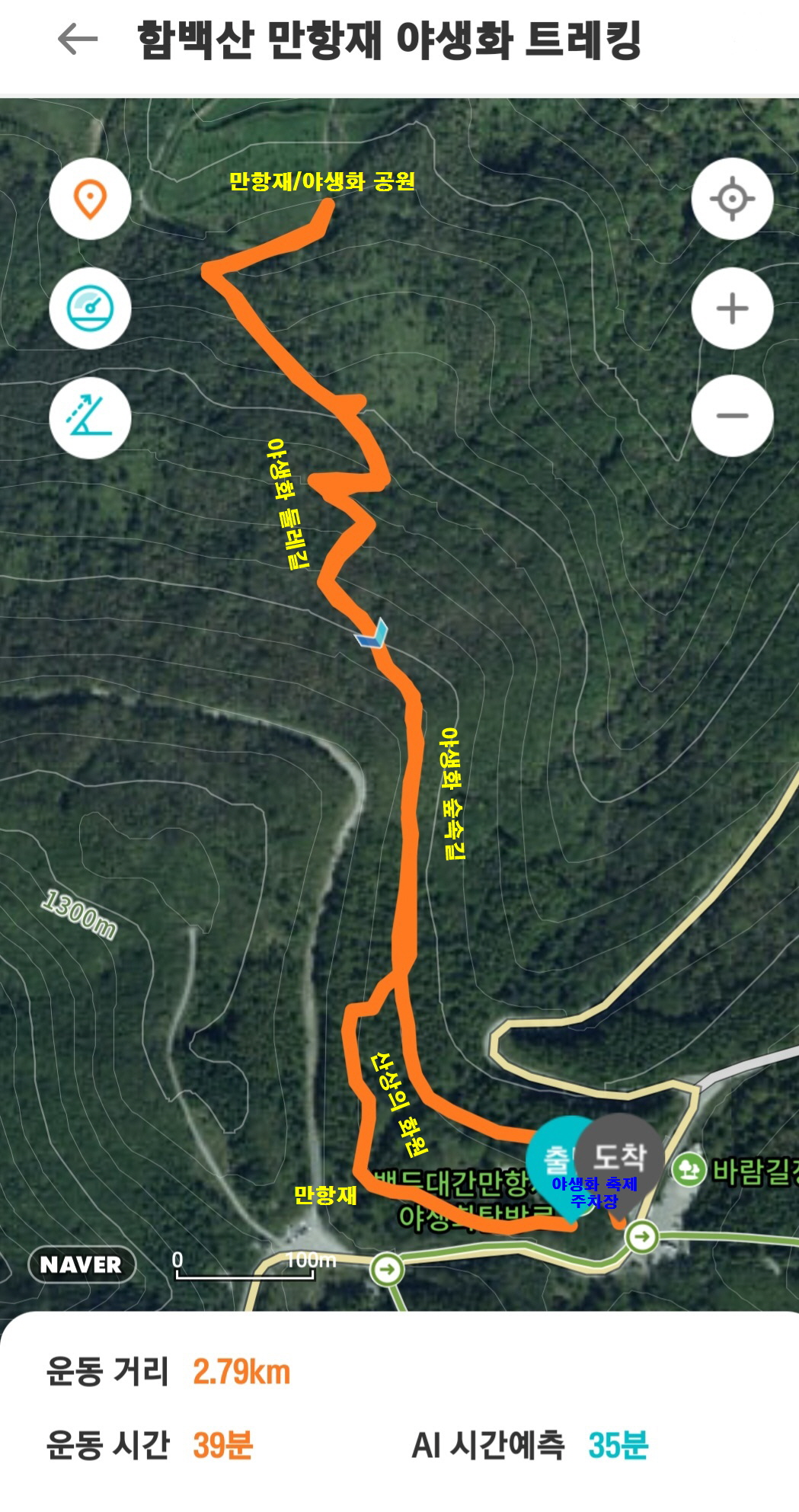 ▲ 함백산/만항재 야생화 트레킹 트랭글 궤적도 ......